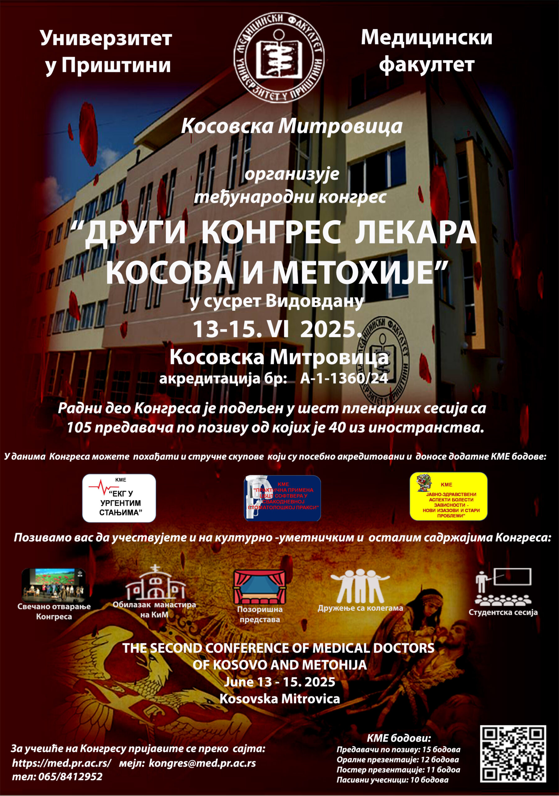 Наша је жеља да заједно са вама, у сусрет Видовдану, организујемо овај значајни међународни скуп и да у данима Конгреса, наш факултет, универзитет и град Косовска Митровица постану научно, медицинско и културно средиште земље и региона.